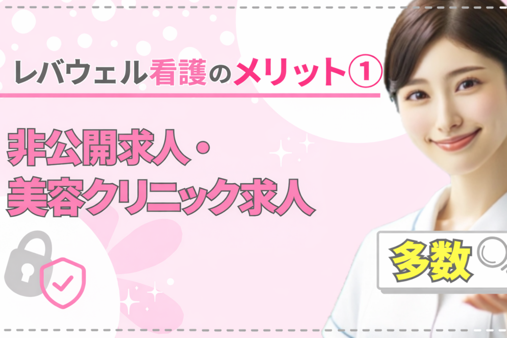レバウェル看護のメリット①::非公開求人・美容クリニック求人多数