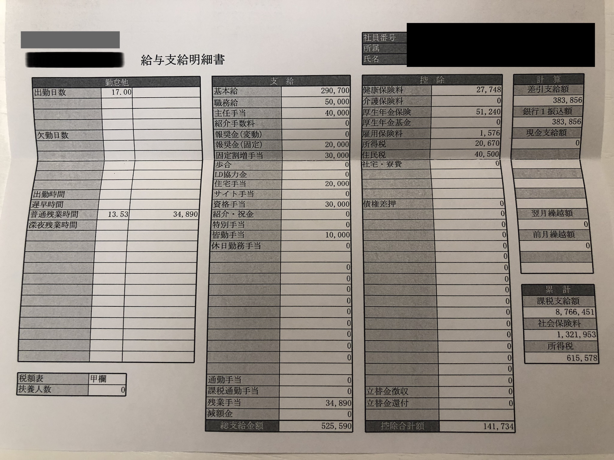 給料:基本給29万円(手当別、手当てが割と充実している)