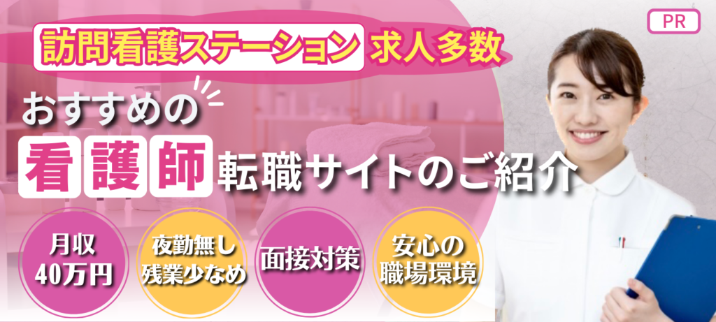 ※また訪問看護ステーションは小規模なところも多く、採用コストをかけれないところもありますので、看護師転職サイトと併せて、各ステーションのホームページやSNSも見るようにしましょう。