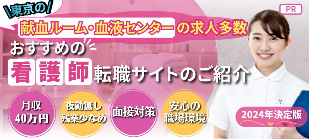 現在、看護師転職サイトのレバウェル看護では、東京・関東エリアの採血看護師・献血ルーム看護師求人特集を行っています。