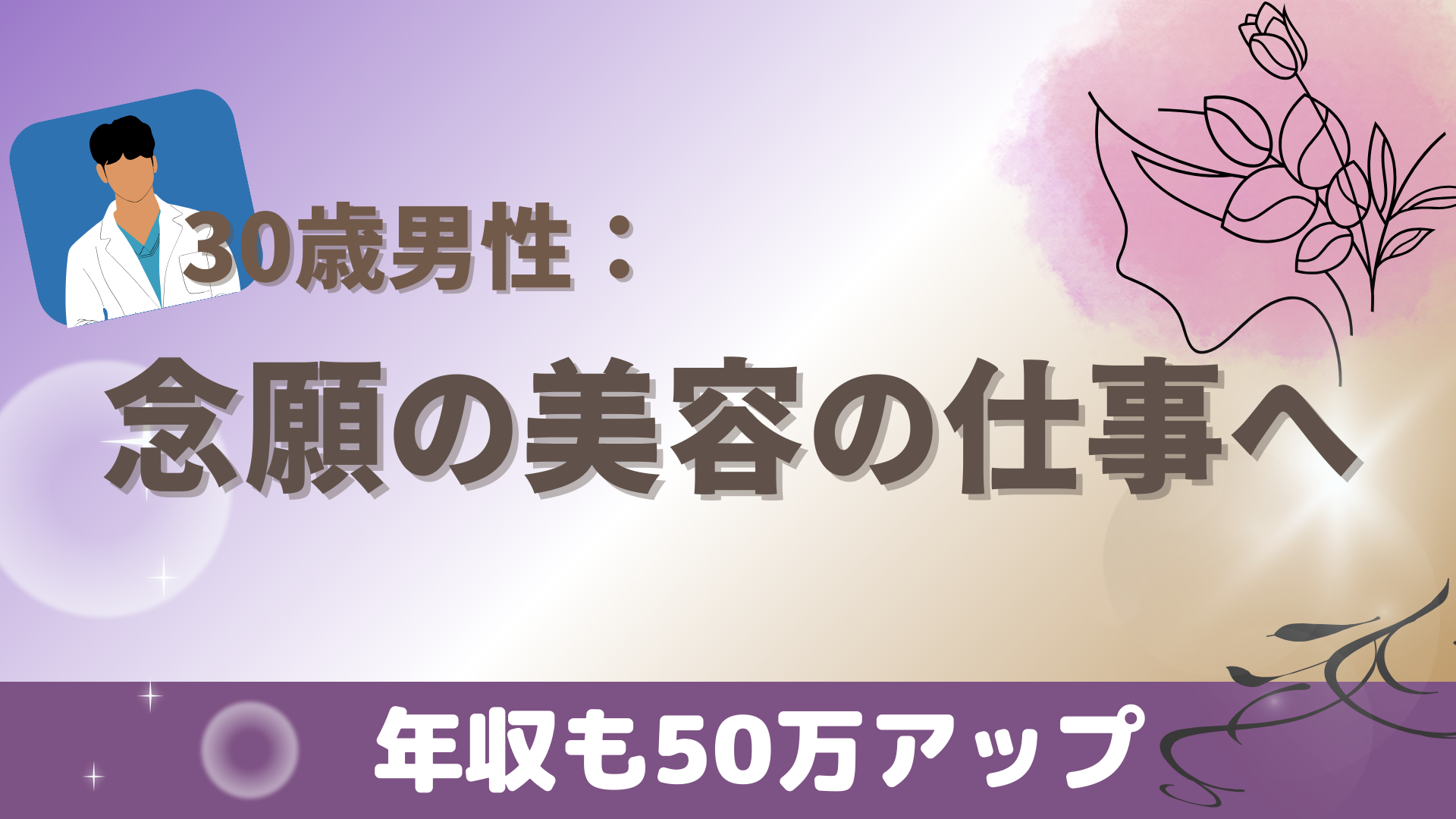30歳男性:念願の美容の仕事へ 年収も50万アップ